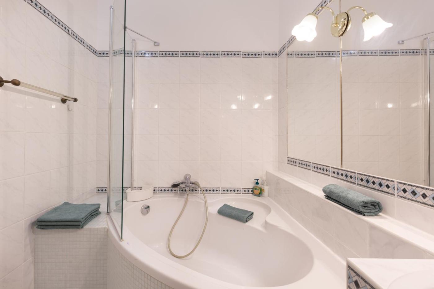 Apartment. This spacious apartment comprises 4 bedrooms, a kitchen and 1 bathroom with a bath and a shower. In the kitchen, guests will find a stovetop, a refrigerator, a dishwasher and kitchenware. The apartment features parquet floors and provides a washing machine, a coffee machine and city views. The unit offers 14 beds.