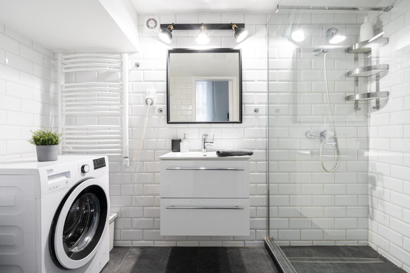 One-Bedroom Apartment. Boasting a private entrance, this apartment also features 1 bedroom, a seating area and 1 bathroom with a walk-in shower and a hairdryer. Guests can make meals in the kitchen that has a stovetop, a refrigerator, a microwave and a tea and coffee maker. The apartment features a washing machine, a dining area, a sofa, heating, as well as a flat-screen TV. The unit has 1 bed.