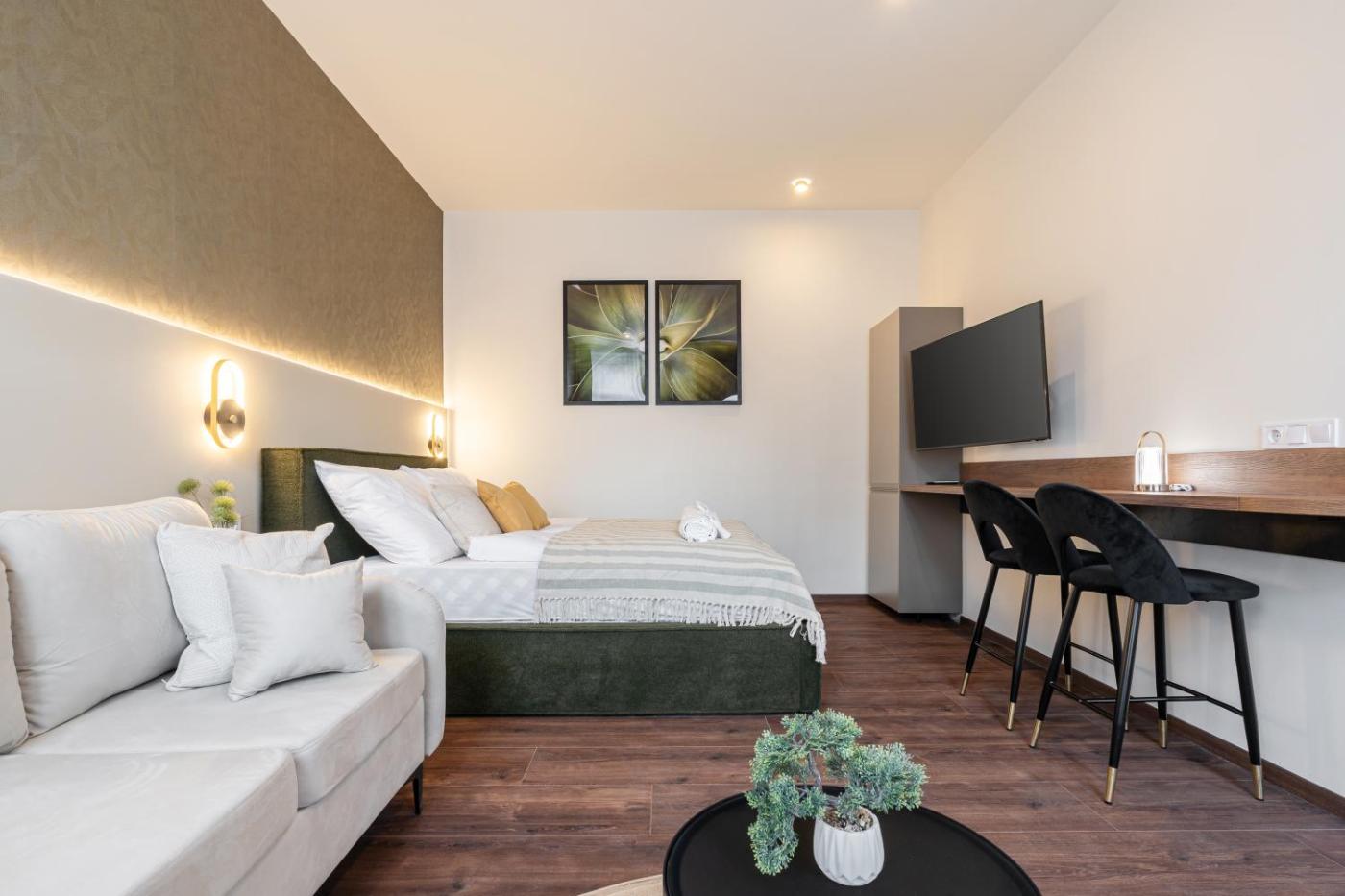 One-Bedroom Deluxe Apartment. Featuring a private entrance, this air-conditioned apartment consists of 1 living room, 1 separate bedroom and 1 bathroom with a shower and a hairdryer. The well-equipped kitchen features a stovetop, a refrigerator, kitchenware and an oven. The apartment provides a flat-screen TV with cable channels, soundproof walls, a seating area, a dining area as well as city views. The unit offers 2 beds.