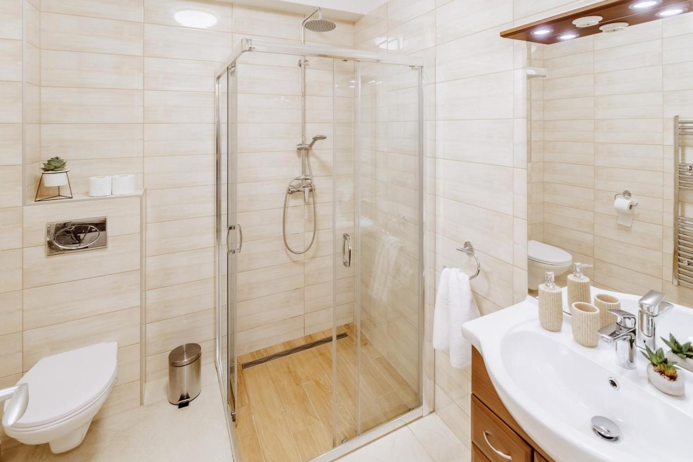 One-Bedroom Apartment. Featuring a private entrance, this air-conditioned apartment comprises 1 living room, 1 separate bedroom and 1 bathroom with a shower and a hairdryer. Meals can be prepared in the kitchen, which comes with a stovetop, a refrigerator, a dishwasher and kitchenware. Boasting a terrace with garden views, this apartment also provides a washing machine and a flat-screen TV with cable channels. The unit offers 2 beds.