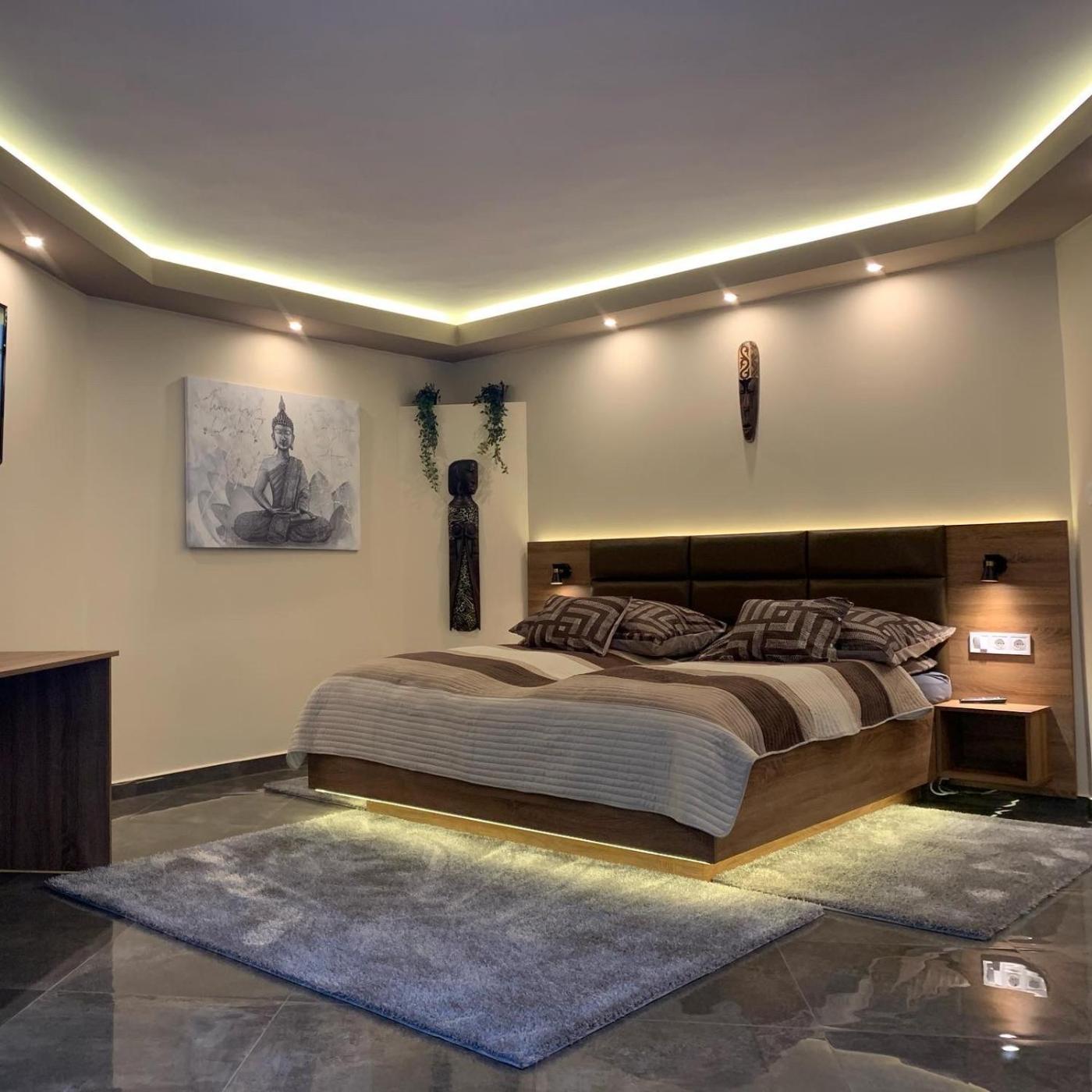 Deluxe Double Room. This double room features a private pool, hot tub and spa bath. The spacious double room offers a private entrance, a coffee machine, as well as a private bathroom boasting a walk-in shower and a hairdryer. The kitchen has a refrigerator, kitchenware and a microwave. This double room has a wardrobe, a tiled floor, a flat-screen TV with streaming services and a terrace. The unit has 1 bed.