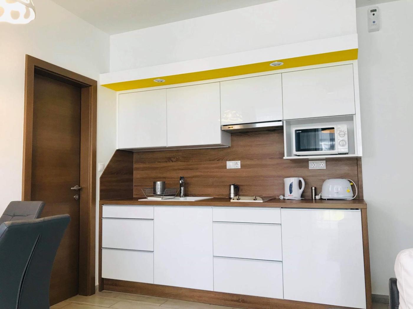 One-Bedroom Apartment. This air-conditioned apartment comes with 1 living room, 1 separate bedroom and 1 bathroom with a shower. Guests can make meals in the kitchen that features a stovetop, a refrigerator, kitchenware and a microwave. Boasting a balcony with city views, this apartment also features a tea and coffee maker and a flat-screen TV with cable channels. The unit has 2 beds.
