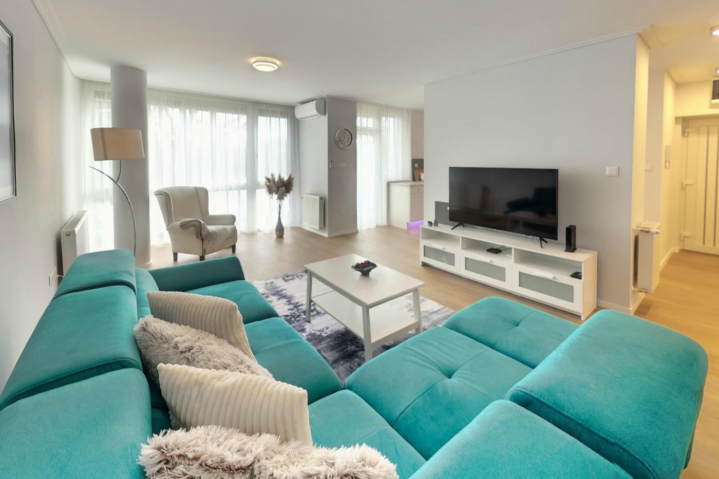 Apartment with Balcony. Boasting a private entrance, this air-conditioned apartment comes with 2 living rooms, 1 separate bedroom and 1 bathroom with a shower and a hairdryer. Guests can make meals in the kitchen that features a stovetop, a refrigerator, a dishwasher and kitchenware. The spacious apartment features a washing machine, soundproof walls, a tea and coffee maker, a flat-screen TV with cable channels, as well as river views. The unit has 2 beds.