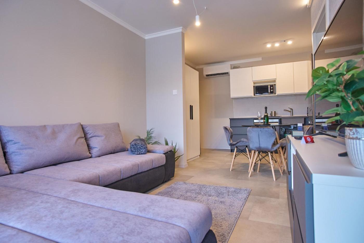 One-Bedroom Apartment. Featuring a private entrance, this air-conditioned apartment consists of 1 living room, 1 separate bedroom and 1 bathroom with a shower and a hairdryer. Meals can be prepared in the well-fitted kitchen, which is equipped with a stovetop, a refrigerator, a dishwasher and kitchenware. The apartment provides a washing machine, soundproof walls, a tea and coffee maker, a flat-screen TV, as well as garden views. The unit offers 2 beds.